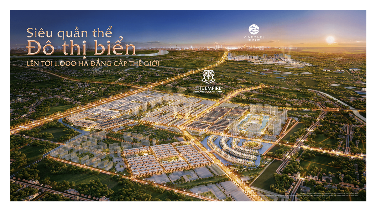 Là đại đô thị kế tiếp sau thành công vang dội của Ocean Park (Gia Lâm – Hà Nội), Vinhomes Ocean Park 2 – The Empire được xem là “siêu phẩm biểu tượng” của Vingroup tại Hưng Yên. Dự án tọa lạc ngay trung tâm vùng kinh tế trọng điểm Bắc Bộ, tiếp giáp quốc lộ 5B và cao tốc Hà Nội – Hải Phòng, chỉ mất chưa đến 20 phút để di chuyển đến trung tâm Thủ đô.
