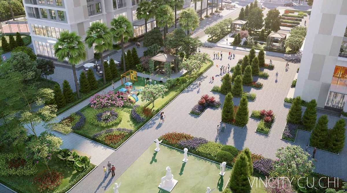 Dự án Vinhomes Củ Chi có diện tích lên tới 6.100 ha, được phân chia thành các phân khu chức năng bao gồm căn hộ cao tầng, nhà phố – liền kề, shophouse, biệt thự và khu thương mại – dịch vụ. Mật độ xây dựng thấp, phần lớn diện tích được ưu tiên dành cho cây xanh, hồ điều hòa và công viên, mang lại không gian sống thoáng đãng, trong lành. Các tuyến đường nội khu rộng rãi, được bố trí hợp lý, giúp cư dân thuận tiện di chuyển và dễ dàng tiếp cận các tiện ích nội khu.